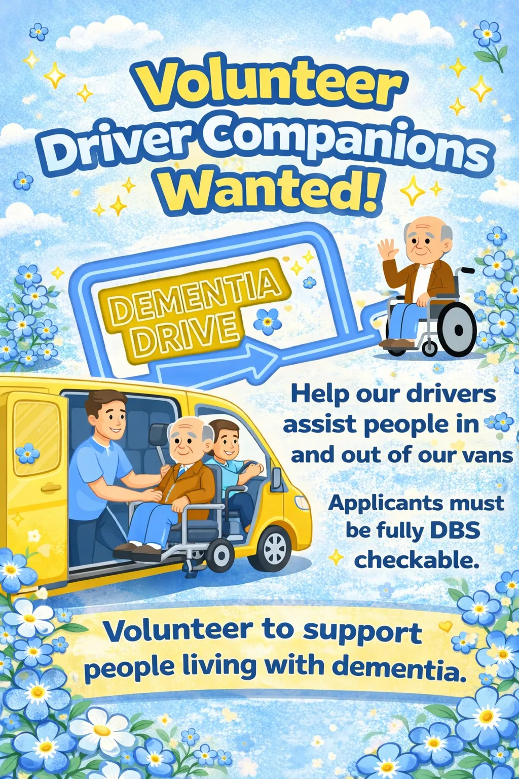 As we grow we'll always need drivers & companions. You can also volunteer to help us grow too you know... we need: